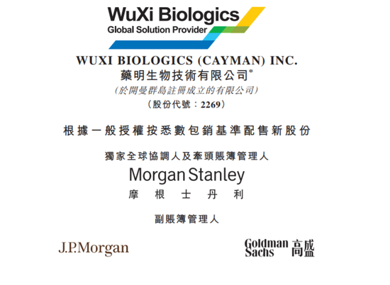 2月3日消息,药明生物发布配售公告,配售代理同意向目前预期不少于六名的独立专业、机构及╱或其他投 资者(为或将为独立第三方)按悉数包销基准及每股112.00港元的价格配售(或 如未能配售,则由配售代理以主事人身份自行购买)1.18亿股一级配售股份。一级配售须待联交所上市委员会批准一级配售股份上市及买卖后,方可作实。一级配售股份将根据一般授权发行。