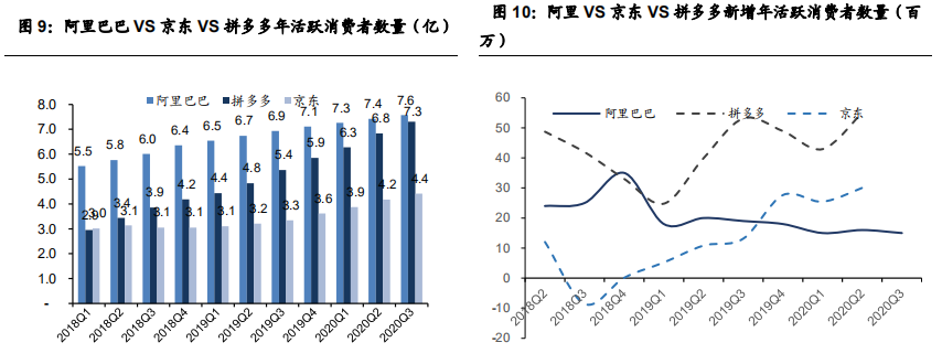 而仅仅上线运营5年多的拼多多年活跃消费者有望追上阿里巴巴。