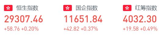 周二恒生指数涨0.2%,报29307.46点;国企指数涨0.37%,红筹指数涨0.49%。