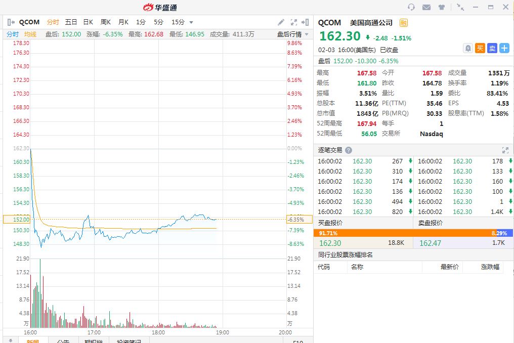 高通第一财季调整后每股收益超出华尔街分析师预期,但营收则未能达到预期,导致其盘后股价大幅下跌6%。