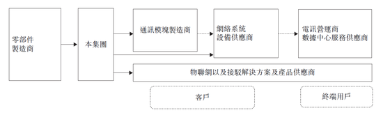 公司从上游的电讯及数据通讯接驳产品供应商采购零部件,销售给下游客户,并根据客户需要提供技术支持服务,下游的客户主要包括通讯模块制造商、网络系统设备供应商、物联网产品供应商等等,主要客户有中兴通讯、烽火通信等国内通信行业龙头企业。