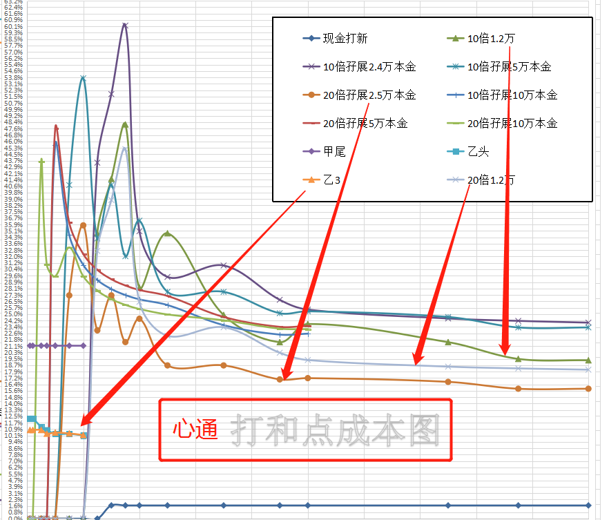 从成本的角度考虑,肯定是现金一手是最划算的,打和点就1点多,再往上一点就是这次的 B组,打和点基本上在10%-12%,对于这种热票,已经很久没有这么低的打和点了,记得当时医度都是百分之二三十的,再往上一点就是20倍2.5万的认购方案以及20/10倍1.2万 的 小甲组的方案了。打和电最高的10倍2.4万的方案估计也很少人去用,毕竟这一次冲突的票来了三个,一般一个小甲家户最多也就放上2万多的本金了,打个10手,10倍十几万融资的孖展也就差不多了,不然两三万本金在账户里面,如果全部打一只票那其他新股就不用玩了,当时也是建议每个户放2~3万块,同时吃下多个票的,就说了别一股脑全打一个票上面。