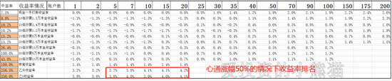 横轴代表资金量,纵轴代表收益率,如果这一次新通涨幅能翻倍,那么单次收益率。