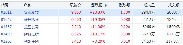 2月4日消息,部分区块链概念股走高,火币科技涨20%,雄岸科技涨19%,美图涨11%,欧科云链涨10%。