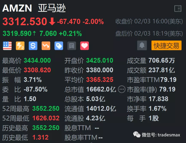 在财报和高管消息的推动下,亚马逊股价周二在盘后交易中上涨约1%。年初至今,该公司股价上涨了约4%,在过去12个月里上涨了近70%。