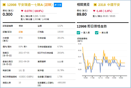 2、看错方向:平安瑞通一七购(12998.HK),周三下跌18.9%。