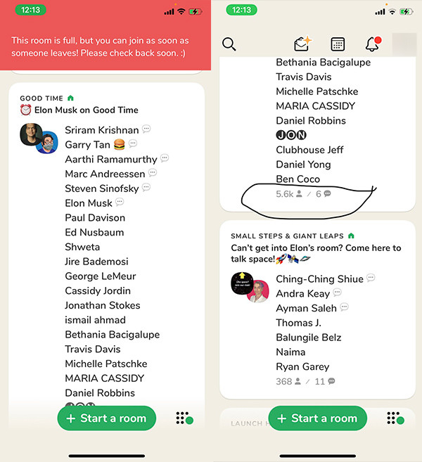 马斯克进驻Clubhouse接受数小时的语音采访,直播一开始上限5000人的聊天室被“挤爆”了。