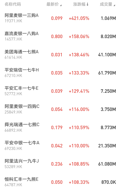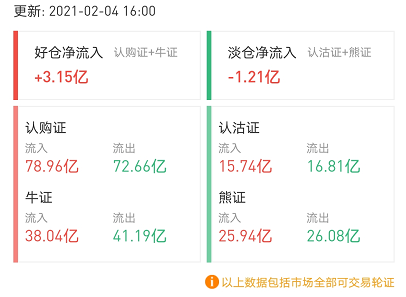 其中,窝轮总成交187.05亿港元,牛熊证总成交137.21亿港元。