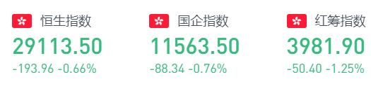 周四恒生指数跌0.66%,报29113.5点;国企指数跌0.76%,红筹指数跌1.25%。