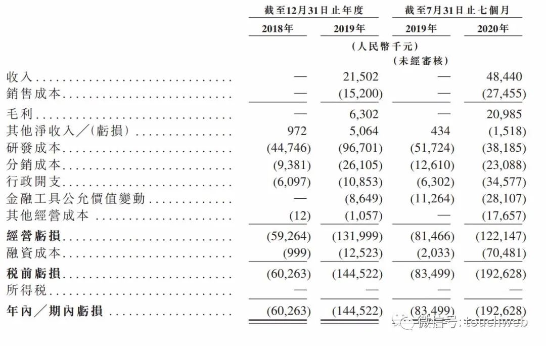 心通医疗2018年、2019年期内亏损6026万元、1.45亿元。心通医疗2020年前7个月期内营亏损为1.93亿元,上年同期期内亏损为8350万元。