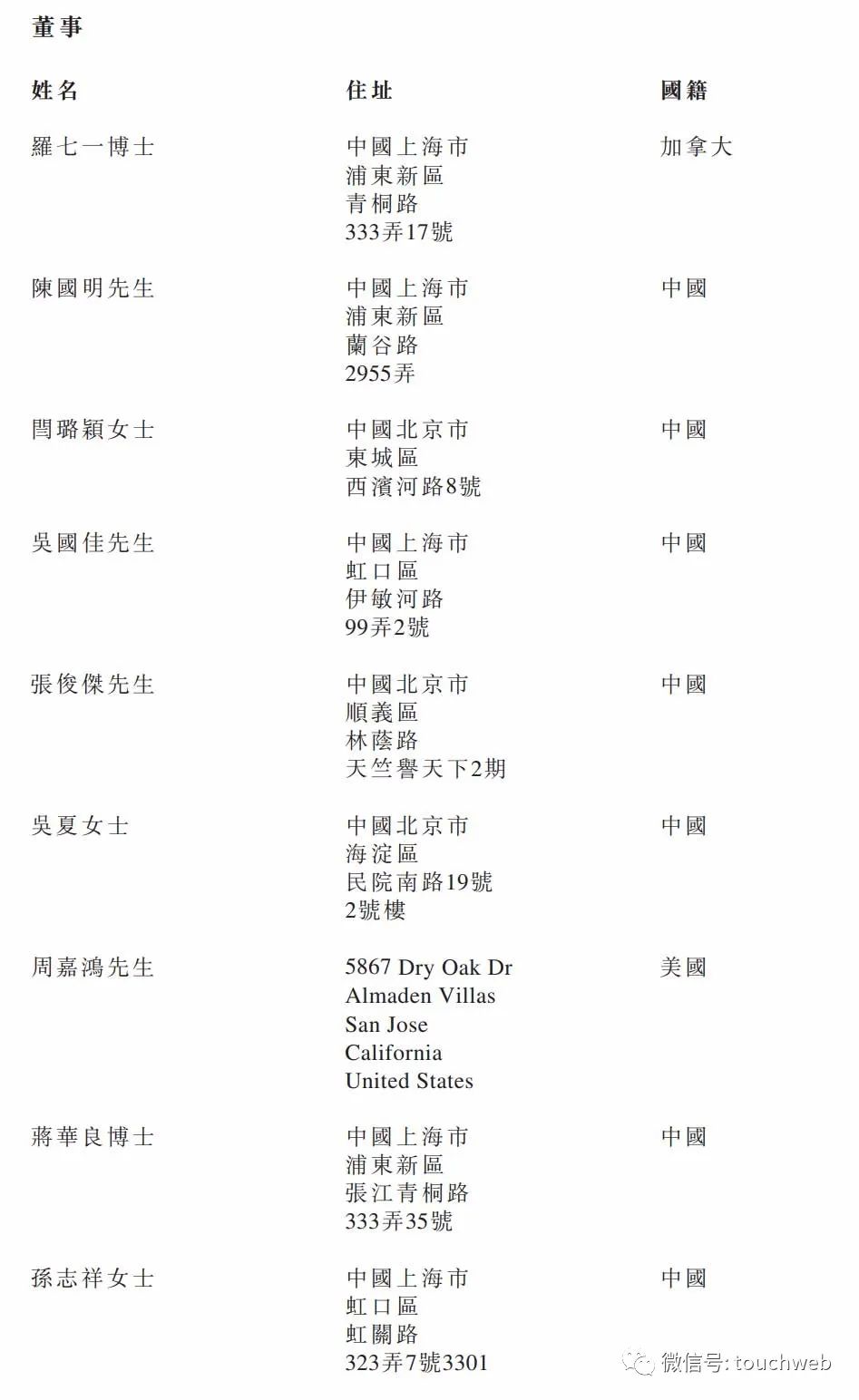 心通医疗董事分别为罗七一博士、陈国明、闫璐颖、吴国佳、张俊杰、吴夏、周嘉鸿、蒋华良。其中,罗七一为加拿大国籍。