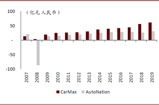 图表: 2007年至今CarMax与AutoNation的净利润增速