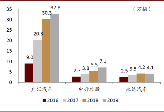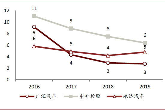 注:包括广汇汽车、中升控股、永达汽车、广汇宝信和正通汽车