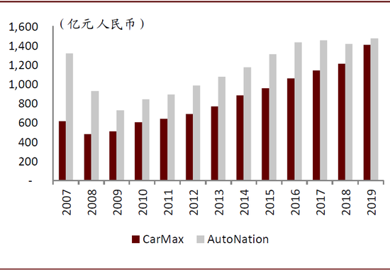 图表: 2007年至今CarMax与AutoNation的营业收入