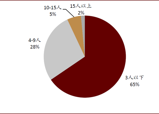 由于二手车行业没有实质的经营资质要求,独立的二手车商商家数量众多,规模差距大,年营业额从不足100万元到超过2,000万元不等,格局非常分散。根据HCR数据,2015年我国二手车商中雇佣工人数量在3人及以下的占65%,主要以中低端车型为主,高端车型的二手车商员工数集中在4-9名。
