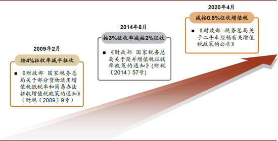 国家税务总局于2020年4月发布公告称,为促进汽车消费,从事二手车经销的纳税人销售其收购的二手车,由原按照简易办法依3%征收率减按2%征收增值税,改为减按0.5%征收增值税,自2020年5月1日开始正式施行。以一辆二手车售价6万元为例,预期会减少900元的增值税。
