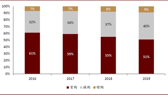 换购比例不断上升,助推二手豪车需求。根据乘联会数据,我国新车购买结构中换购比例持续上升,2019年换购比例提升至40%。我们认为,伴随着消费升级,换车消费者或更倾向于升级至品质性能俱佳的豪华品牌,二手豪车可以满足消费能力有限的消费者的换购需求。