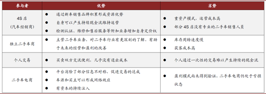 综上所述,二手车行业的四大参与者的优劣势总结如下: