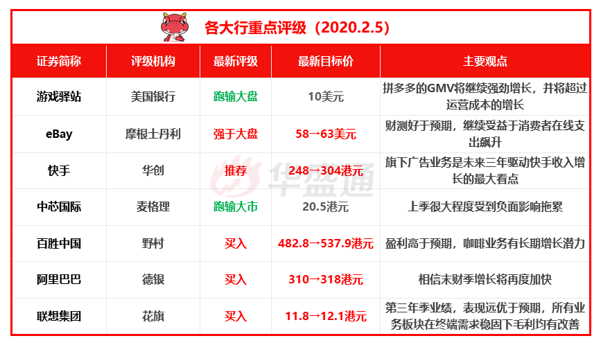 编者注:美国银行继续看空游戏驿站,目标价10美元,华创首予快手“推荐”评级,目标价304港元,麦格理唱衰中芯国际 ,目标价20.5港元