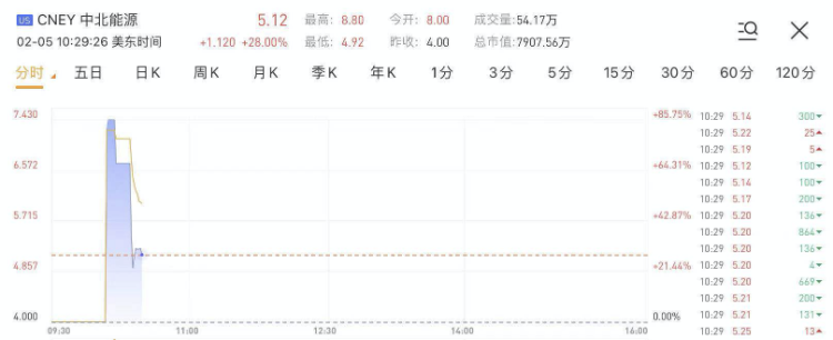 截至发稿,中北能源仍涨约28%,现报5.12美元,当前总市值约8000万美元。