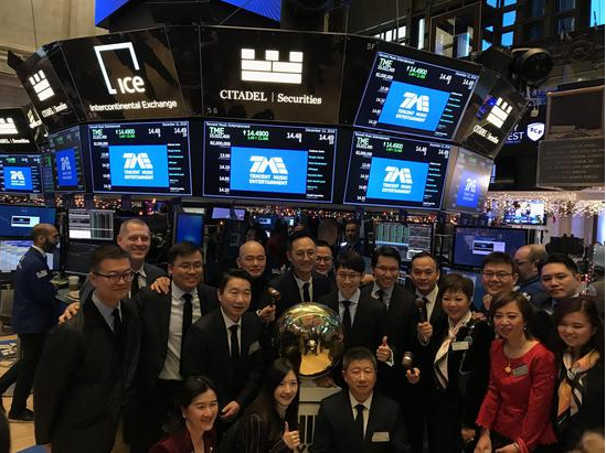 腾讯音乐早年据报也曾考虑在香港上市,但香港不接受‘企业WVR’架构上市,腾讯音乐于2018年12月12日在纽交所挂牌上市,当时募资10.66亿美元。