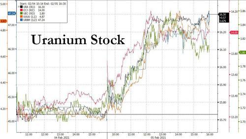 Barnes还认为,铀矿股空头回补也有可能是机构投资者在其他资产(比如GME)上被逼空所致,他们需要平掉仓位获得流动性。
