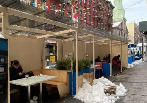 纽约市去年12月14日起餐饮店禁止堂食,仅允许提供外卖和户外用餐服务,但户外用餐结束时间也只能到22时。防疫限制再加上冬季气温低,导致户外用餐人数减少,许多餐馆入不敷出而倒闭。