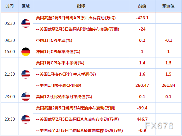 周三(2月10日)关键词:美国CPI、美联储主席讲话