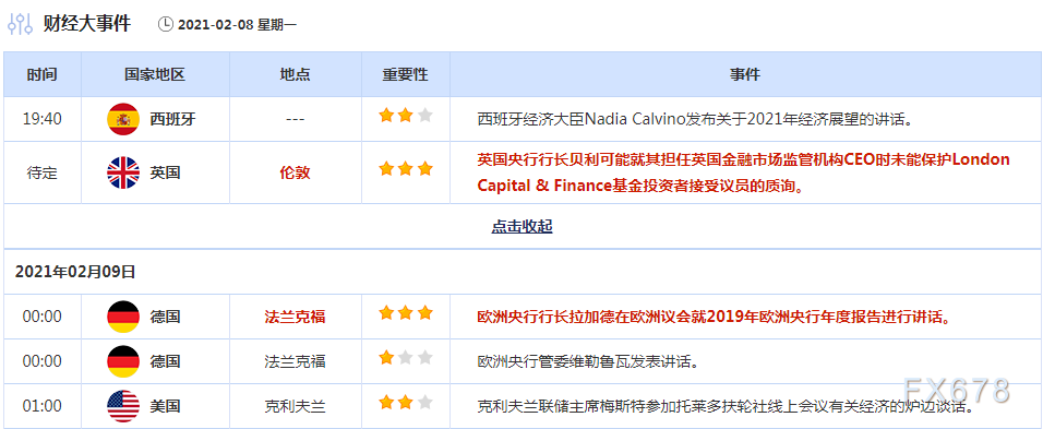 周二(2月9日)关键词:欧美央行官员讲话、EIA原油市场月报