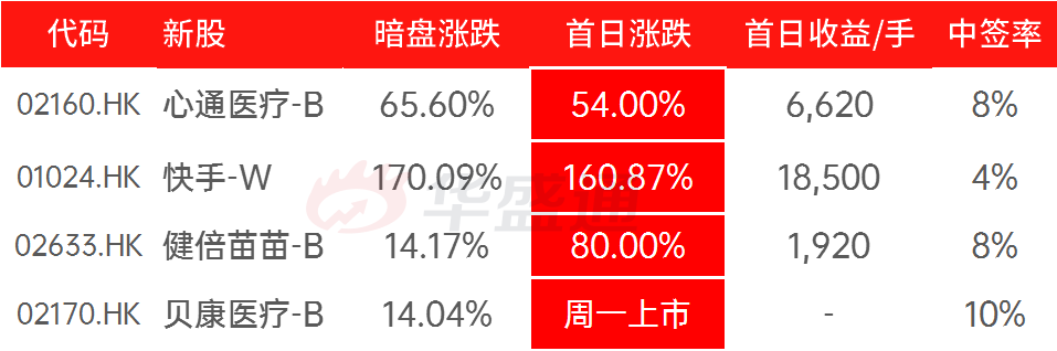 申购人数庞大,中签率极低,快手甚至出现了乙头只有1手的罕见情况,不少股民在暗盘阶段“抢筹”,加上货源高度集中,其股价一度被推高至310.6港元,涨幅扩大至170.09%。