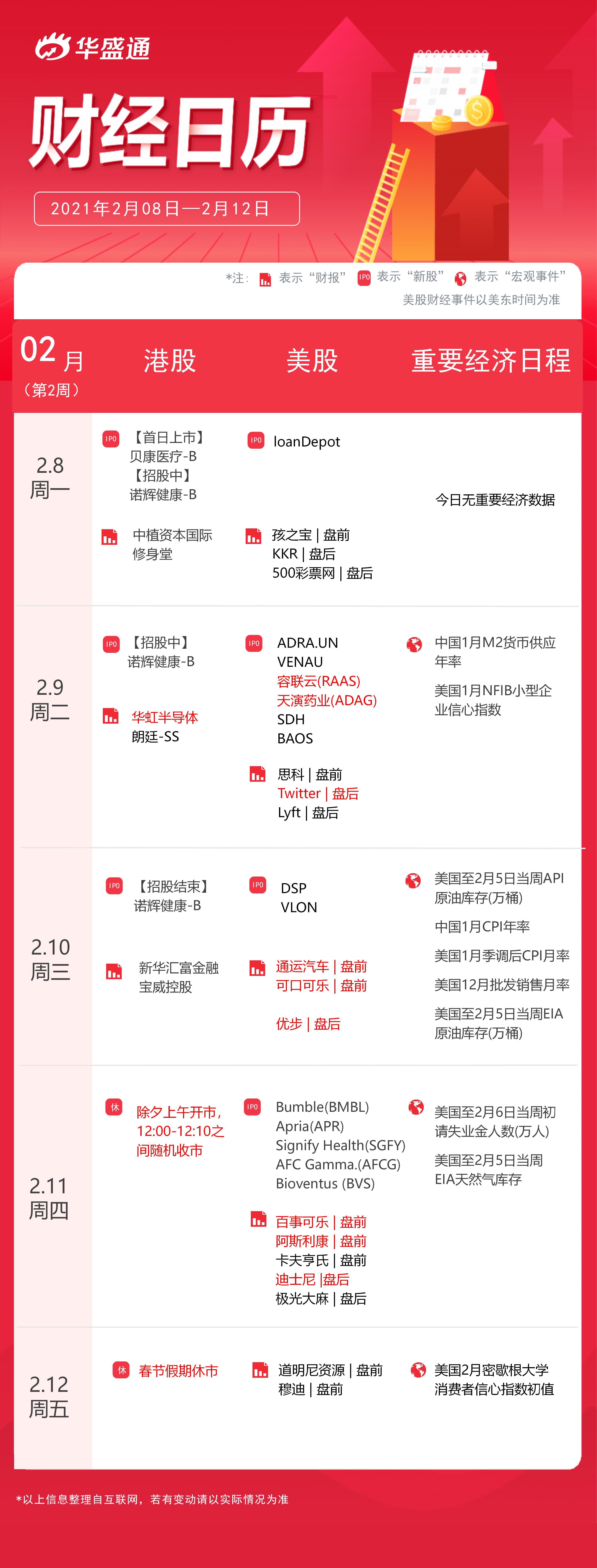 以上即为本周港美股及宏观资讯一览,祝新的一周投资顺利~