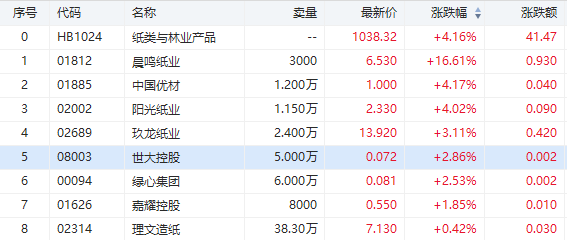 华盛资讯2月8日消息,纸类股今日涨幅强势,晨鸣纸业、玖龙纸业纷纷创52周新高。截至发稿,晨鸣纸业涨超16%,阳光纸业涨超4%,玖龙纸业涨超3%。