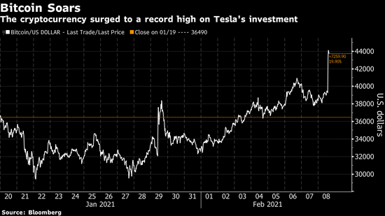 特斯拉向比特币投资了15亿美元,并打算开始接受以比特币为付款方式,提振比特币价格创纪录高位。