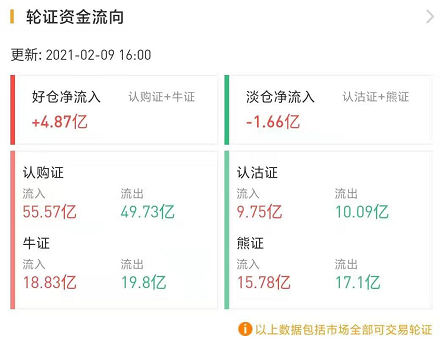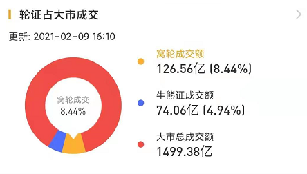 其中,窝轮总成交126.56亿港元,牛熊证总成交74.06亿港元。