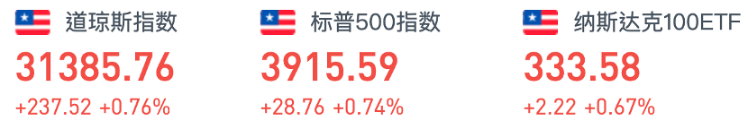 周一,美股三大股指再创新高。截至收盘,道指涨237.52点,或0.76%,报31385.76点;纳指涨131.35点,或0.95%,报13987.64点;标普500指数涨28.76点,或0.74%,报3915.59点。此外,追踪小盘股表现的罗素2000指数上涨2.5%,收于227.27点,同样创历史最高收盘纪录。
