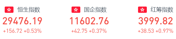 周二,恒生指数开盘涨0.42%,全天呈窄幅震荡走势。截至收盘,恒生指数涨156.72点或0.53%,报29476.19点,全日成交额达1499.38亿。国企指数涨0.37%,报11602.76点,红筹指数涨0.97%,报3999.82点。