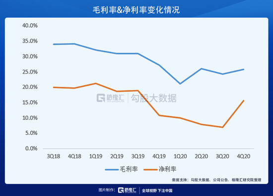 毛利率受益于8寸满产能和涨价影响,以及12英寸开始爬坡,毛利率实现正增长;毛利率在2020Q4开始出现拐点;净利率同样受益于管理费用的下降,也在2020Q4出现拐点,且斜率比毛利率高。