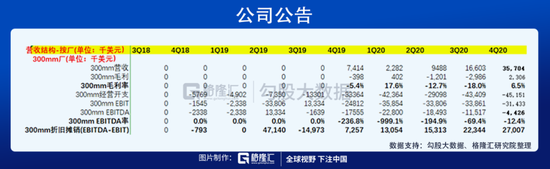 ③EBITDA有望今年转正:由于12英寸属于先进技术,需要投入大量的研发费用,导致EBITDA一直为负,2020Q4 EBITDA为-442.6万美元,2020Q1 EBITDA为-2280万美元,目前看来随着产能爬坡,EBITDA的负值在减少,随着产能继续爬坡,EBITDA有望转正,而当EBITDA实现转正,那么它将为公司贡献利润。