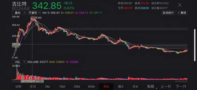 得益于吉比特投资的研发商青瓷游戏推出《最强蜗牛》。2020年8月5日,吉比特股价攀上历史最高峰,当日,其股价一度升至671.60元/股。而2020年三季度起,吉比特开始在股市蹦迪。截至2020年2月9日触及331.77元/股,相较于历史最高价缩水超一半。