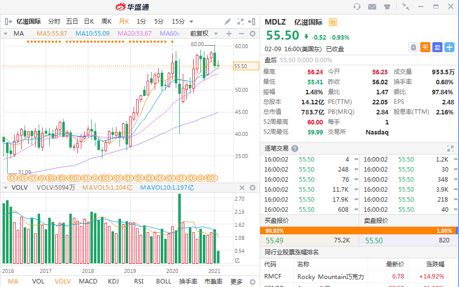 亿滋国际(MDLZ):以奥利奥和吉百利巧克力闻名全球