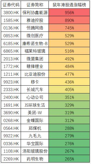 港股涨幅榜单中(截至2月10日),光伏龙头保利协鑫能源涨近10倍,雅迪控股涨8.9倍,恒腾网络涨745%,微创医疗、康希诺等医药股涨超5倍,SaaS股微盟涨492%。此外涨幅20榜单中,还有巴菲特持有的比亚迪,女股神凯瑟琳·伍德加持的移卡,内资爱股美团,火锅潮股九毛九等。