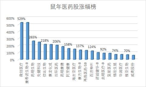 截至2月10日,鼠年医药股中,高瓴持股的微创医疗涨超5倍,成为最大医药牛股,康希诺新冠疫苗研发叠加科创板上市也涨超5倍,药明生物、药明康德等龙头医药股涨幅翻倍。此外,B类股获纳入港股通,刺激康方生物、诺诚健华、启明医疗等涨幅翻倍。