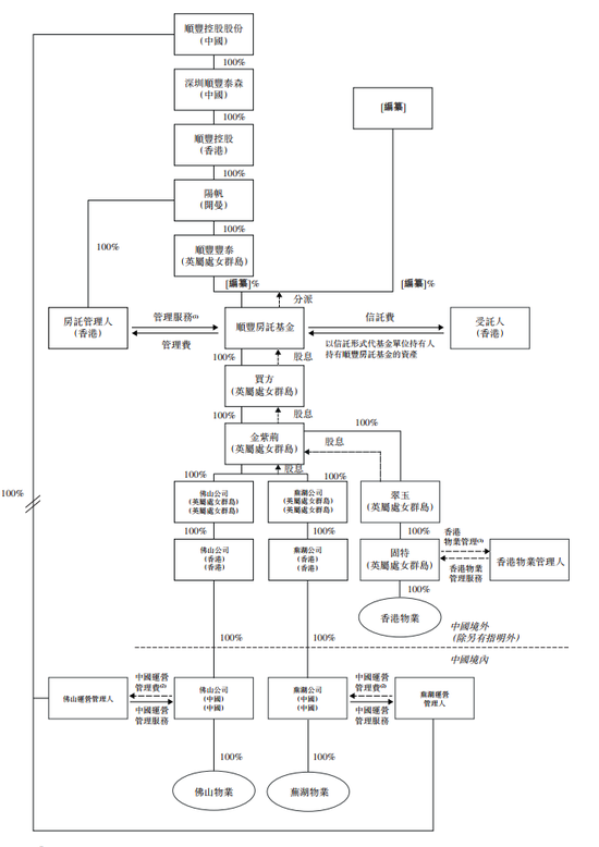 为了筹备上市,顺丰房托进行了一系列的重组。2020年10月22日,在香港注册成立的图展有限公司,向顺丰控股境内间接全资子公司佛山公司、芜湖公司增资1%的股权,增资完成后,两家境内物业公司由有限责任公司转变为中外合资公司,并分别由顺丰控股子公司深圳丰泰及图展分别拥有99%及1%的股权。