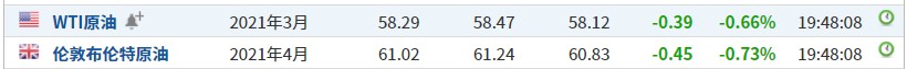 截至发稿,WTI原油跌0.66%,报58.29美元/桶。布伦特原油跌0.73%,报61.02美元/桶。