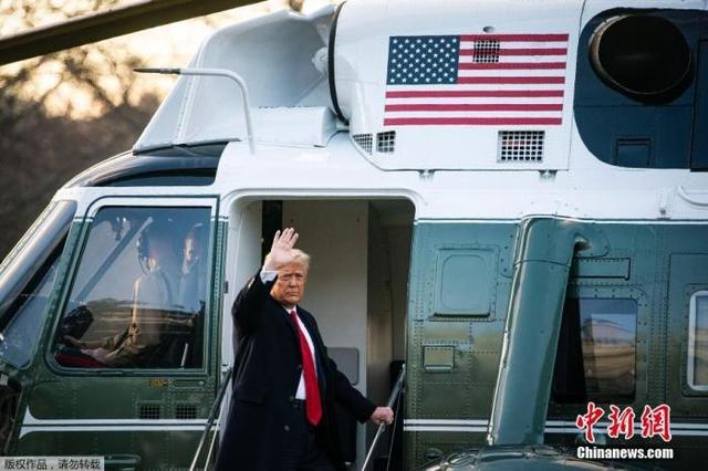 当地时间2021年1月20日,美国华盛顿,特朗普登上“海军陆战队一号”总统专用直升机。