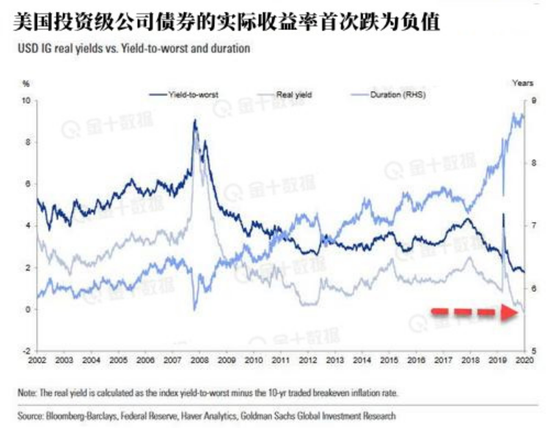 正如高盛的信贷策略师在一个月前所指出的那样,在收益率长期居高不下的情况下,美国投资级公司债券的实际收益率却首次跌为负值。