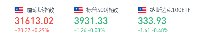 截至收盘,道琼斯指数涨90.27点,涨幅0.29%,报31613.02点,再创历史新高;标普500指数跌1.26点,跌幅0.03%,报3931.33点;纳斯达克综合指数跌82点,跌幅0.58%,报13965.5点。