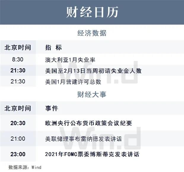周三,受惠于新冠疫情改善和政府的刺激措施,美国1月零售销售数据急增,市场人士忧虑通胀上升,道指表现反覆。美联储周三公布了其1月份FOMC货币政策会议的纪要文件。联邦公开市场委员会(FOMC)成员在最近的一次会议上重申,美联储将在未来继续保持宽松政策。会议纪要显示,美国经济可能需要一段时间才能取得实质性进展。在调整资产购买的速度之前,与公众沟通具有重要意义。