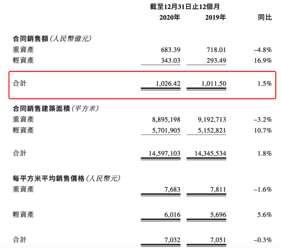 整个2020年,建业不仅超过全年800亿销售目标,更是同比去年微增1.5%,实现1026.42亿元的合同销售总额,算是勉强稳住千亿房企的宝座。