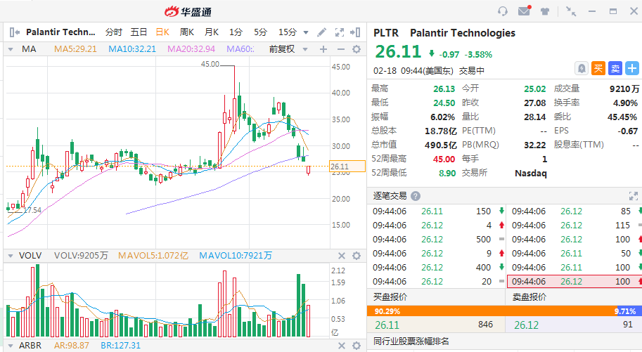 其他热门科技股,Palantir(PLTR)一度跌超9%,今日其股票禁售期将到期,但开盘后股价高走,现跌幅收窄至4%以内。